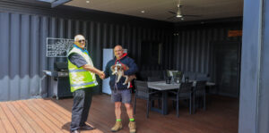 Colour selections were tailored to complement the shipping containers and match the newly built shed: