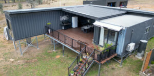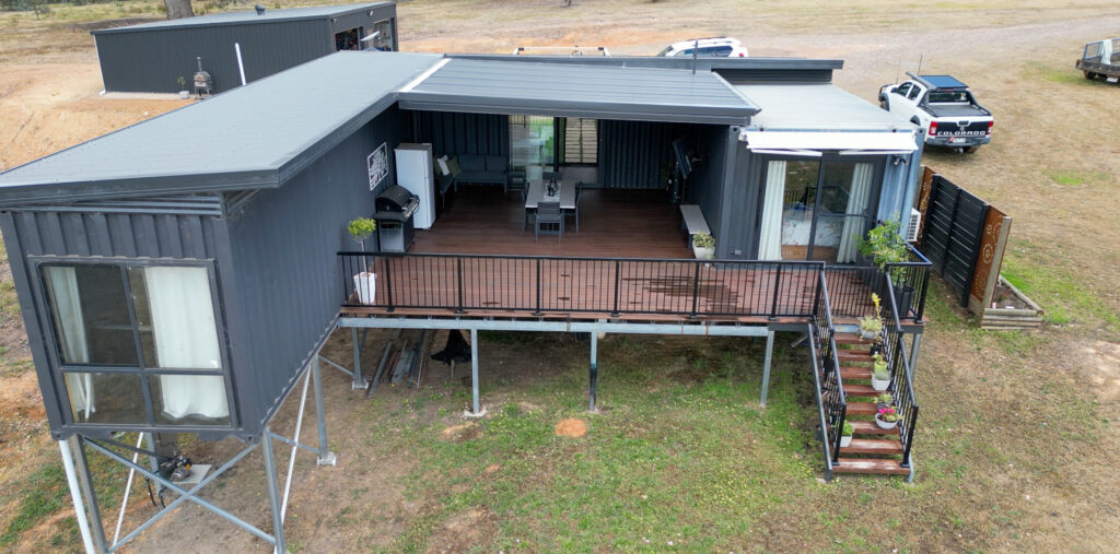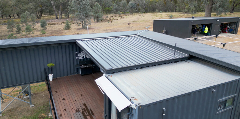 When Gavin first enquired in October 2024, he envisioned a refined outdoor entertaining space that would seamlessly connect two shipping containers forming his forever home. The brief was clear: a structure that offered year-round comfort, architectural consistency, and long-term durability, while providing the perfect spot to enjoy a coffee and take in the spectacular views.