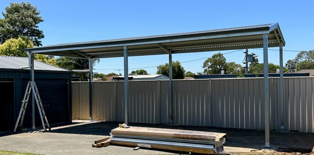 After discussing Neil’s requirements, the All Sheds team recommended a Stratco Outback Flat Roof Patio paired with a 9m x 3.7m x 3.1m Gable Roof Carport with a 12.5° pitch.