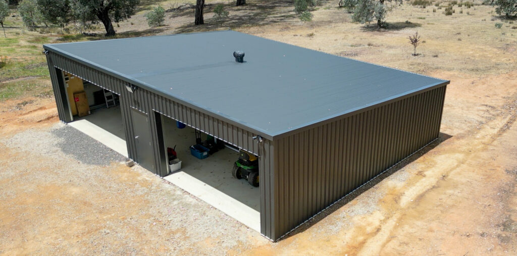 The shed was designed at 12m x 9m x 2.2m with a 5-degree skillion roof, engineered for a strong wide span structure without compromising performance and strength.
