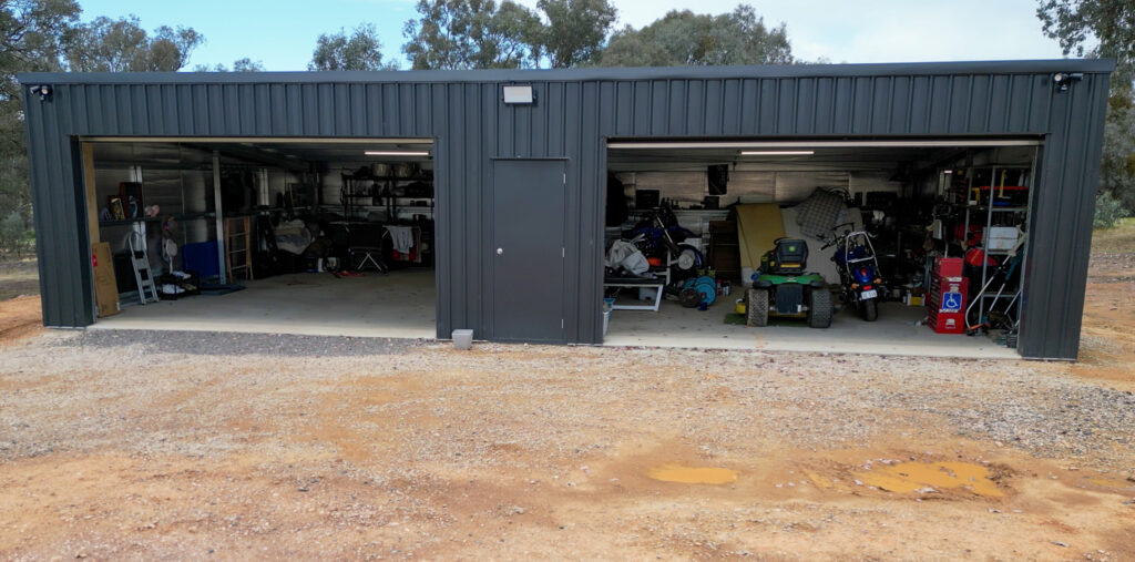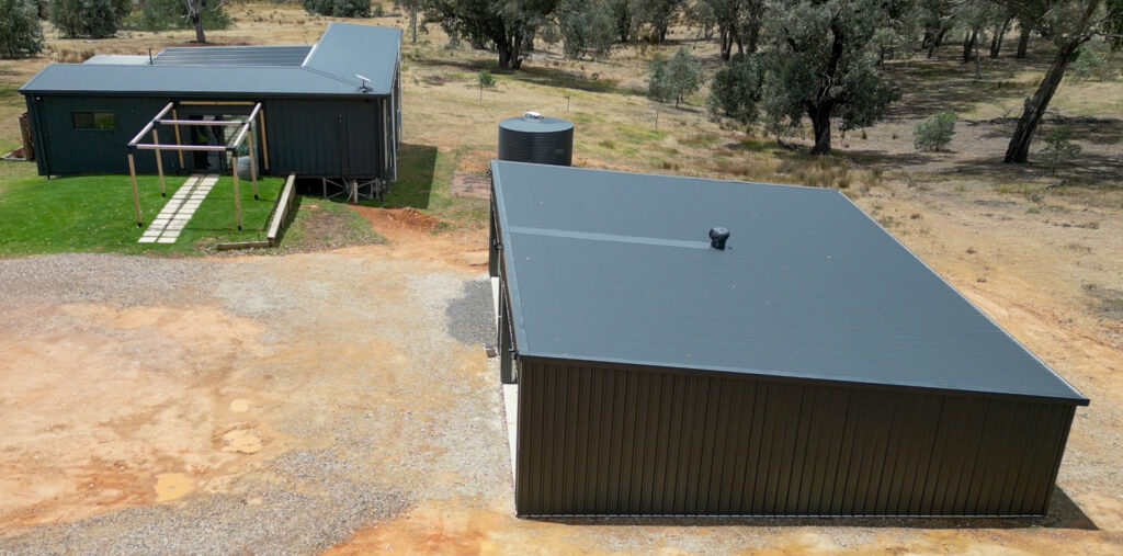 The finished result is a clean, cohesive setup where both structures sit seamlessly together. The Monument colour scheme ties everything in visually, while the wide span skillion roof shed delivers the practical storage space Gavin needed.
