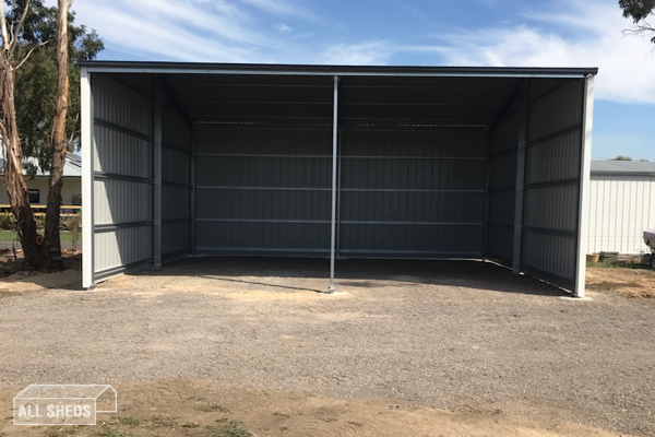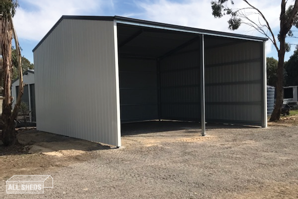 A two part project for a customer in Nagambie. The project included a 6m x 6m x 3m Gable Roof Premium Pergola with a 12.5° pitch roof and an 8m x 8m x 4m Gable Roof Premium Machinery Shed with a 12.5° pitch roof. Both the pergola and the shed are cladded in Colorbond Steel in Surfmist.