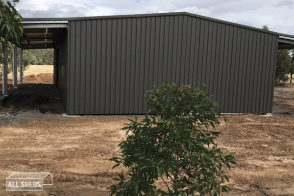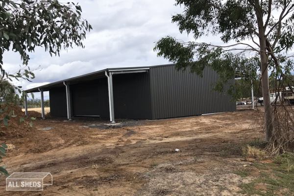 This 20.2m x 9m x 3.6m Gable Roof Premium+ Shed with a 7.5° pitch roof and 2 20.2m x 3m Lean To was constructed for a customer in Arcadia. It is cladded in Colorbond Steel Woodland Grey. The shed includes a personal access door and 4 auto roller doors. As the shed is a sturdy shed this means that the shed has an electro-galvanised RHS frame for durability and Z section girts and purlins for greater strength and spanning capabilities.