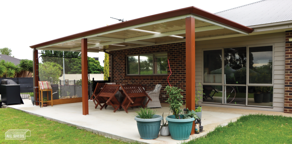 A customer in Kialla contacted the All Sheds team as they were building a new patio and BBQ area in their backyard. They wanted to add a structure that would allow them to turn it into a covered space that would allow them to entertain all year round.