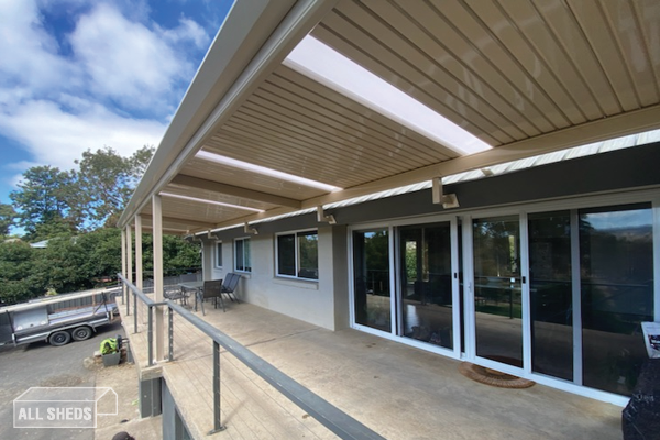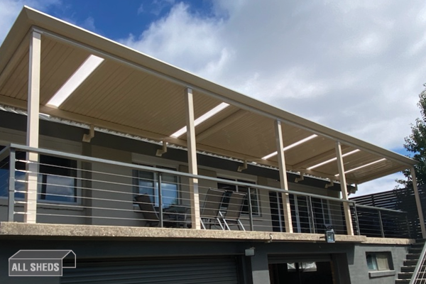 This Stratco Patio was construed for a customer in Alexandra. Standing 2.4m high and spanning 12.98m long and 2.74m wide. It has a 0.5m deck overhang, 5 x rooflites and is in desert cladding. It’s the perfect addition to the outdoor deck.