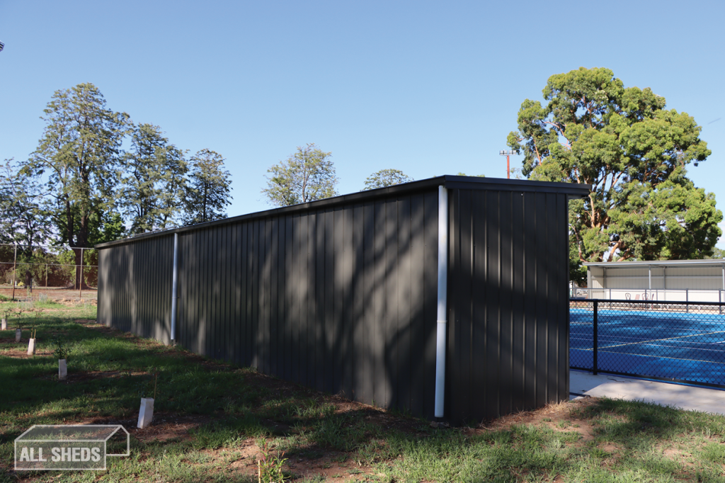 All Sheds and the Football Netball Club discussed exactly what they were wanting to go with their seating, and it was decided that the best solution for their shelter would be 2 x 16m x 2m x 2.65m Premium+ shed. This meant that they could place a shelter on either side of the court and they would provide plenty of coverage over the seating from the winter elements while also providing plenty of standing room.